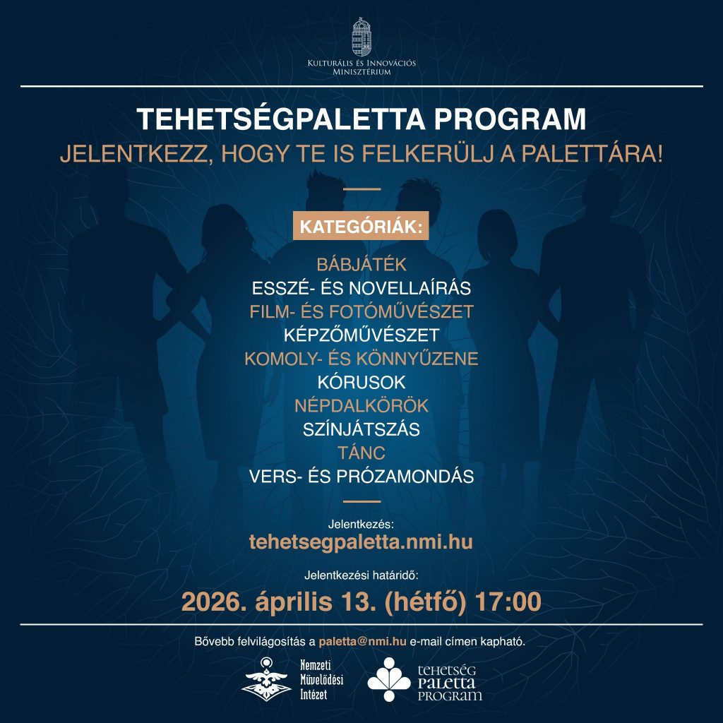 Tehetség Paletta Program A Tehetség Paletta Program az amatőr művészeti közösségek és alkotók számára biztosít bemutatkozási, fejlődési és kapcsolatépítési lehetőséget a Kárpát-medencében. A program szakmai mentorálással és közös tanulási alkalmak biztosításával támogatja a résztvevőket. A kezdeményezés nem verseny, hanem szakmai szemle és találkozási lehetőség, amely minden jelentkező közösség számára biztosít bemutatkozási alkalmat, előszűrés vagy elutasítás […]