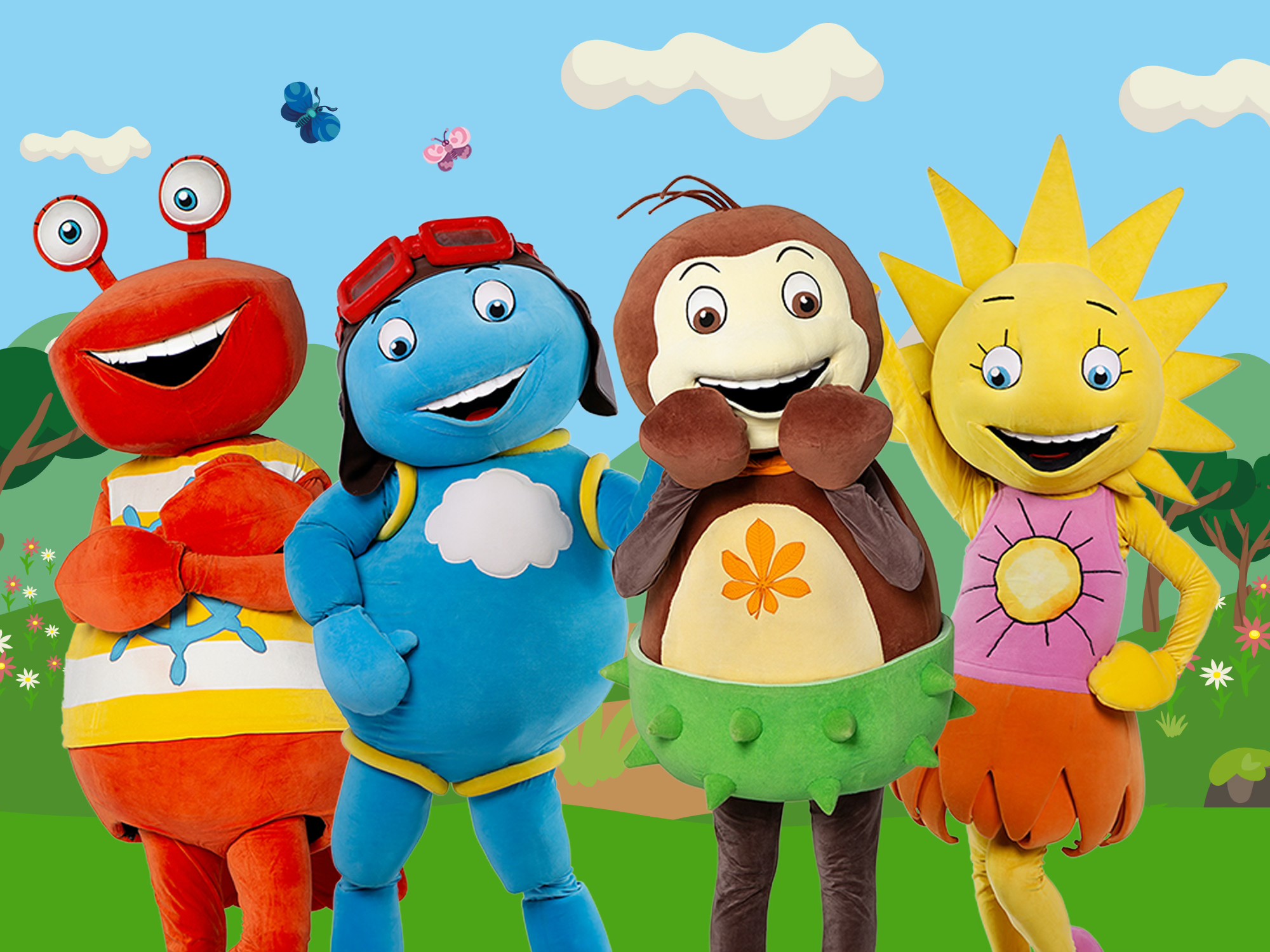 A színpadon négy főszereplő – Gesztenye, Olly, Napsugár és Lufipofi – kelti életre a mesét: együtt énekelnek, játszanak és vezetik végig a kicsiket egy izgalmas, tanulságokkal teli utazáson. (Liza karaktere az előadásban nem szerepel.)