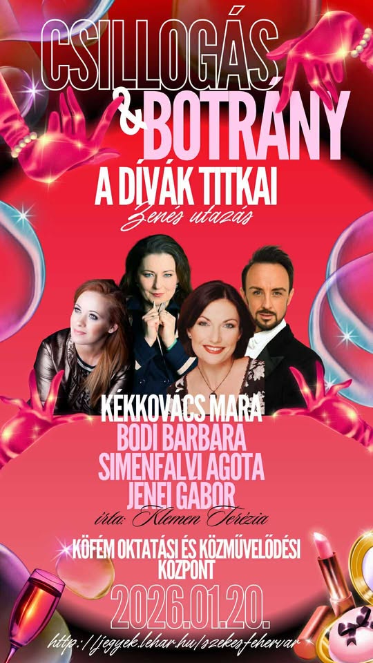 Jegyek a helyszínen és online: jegyek.lehar.hu/szekesfehervarHíres énekesnők nagy titkaiLegendák. Botrányok. Történetek, amelyeket eddig csak a reflektorok ismertek.Képzeld el, hogy egyetlen este alatt végigsétálsz a 20. század ikonikus díva-univerzumán:Edith Piaf utcagyerekből lett csillagaBarbra Streisand bátor, természetes ikonjaSzeleczky Zita tragikusan megszakadt pályájaHonthy Hanna, aki egy legyezőmozdulattal uralta a színpadot…és még megannyi legenda, akinek neve ma is borzongást kelt.A […]